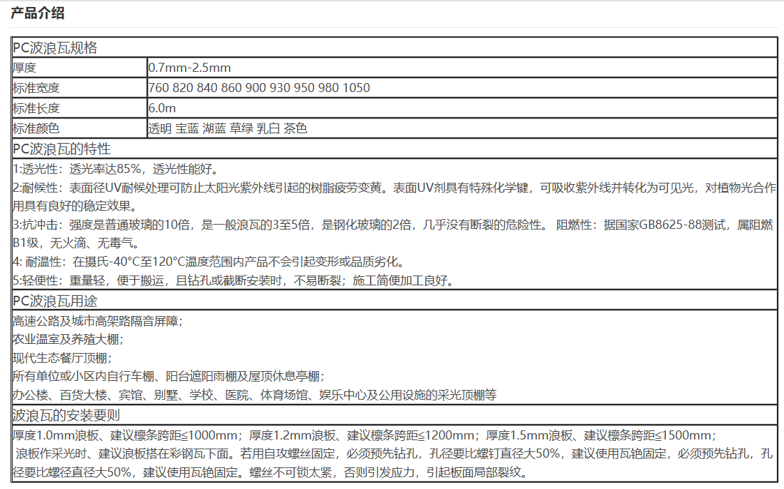 產(chǎn)品名稱:840/930型PC透明瓦廠家