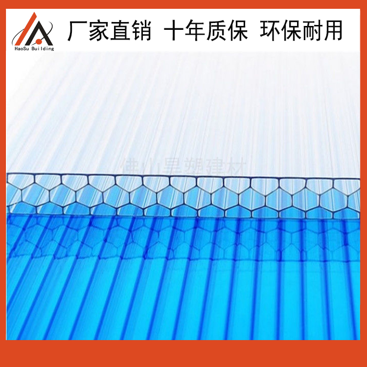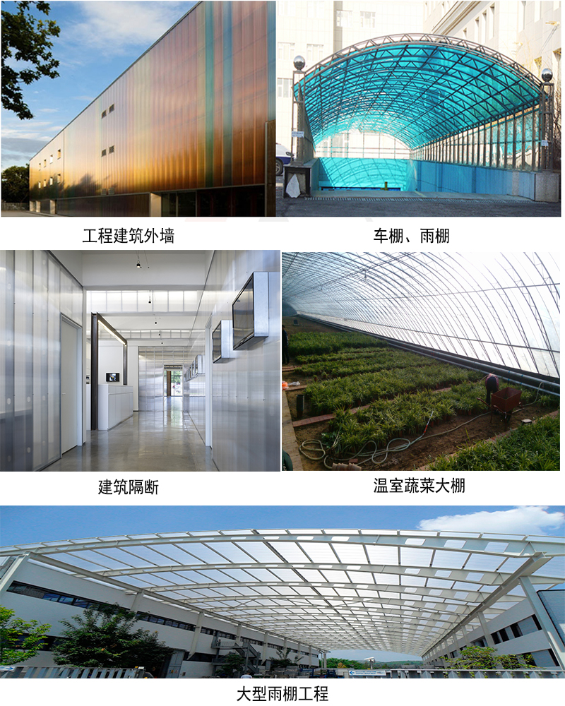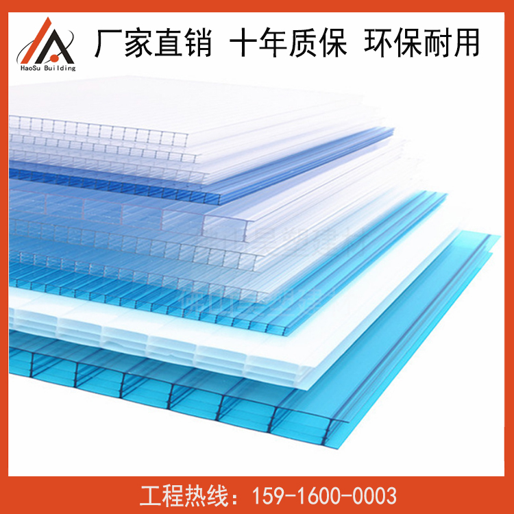 (8)節(jié)能性:夏天保涼,冬天保溫,雙層陽光板有更低于普通玻璃和其它塑料的熱導(dǎo)率(K值),隔熱效果比同等玻璃高7%-25%,雙層陽光板的隔熱最高至49%。從而使熱量損失大大降低,用于有暖設(shè)備的建筑,屬環(huán)保材料。